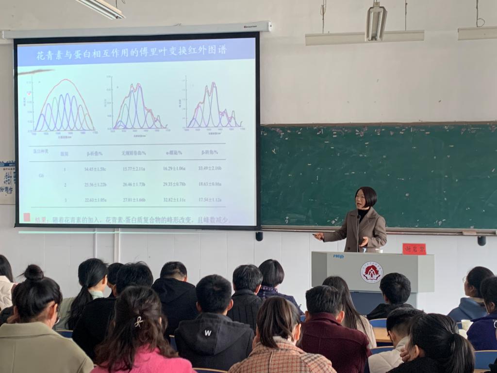 11月22上午,谢岩黎教授和tyc522cc太阳成集团的全体教师就本科生毕业设计问题进行了座谈,座谈中大家展开了热烈的讨论,谢教授在tyc522cc太阳成集团前期工作的基础上对每位指导老师的论文选选题、实验设计、文献查阅进行了细致的指导,使tyc522cc太阳成集团教师的论文指导能力得到了进一步增强。随后,谢岩黎教授又面向全体本科生就“花青素的营养和利用”的问题进行了一场别开生面的学术报告,讲座上全体师生大胆猜想,踊跃提问,学术氛围异常热烈。