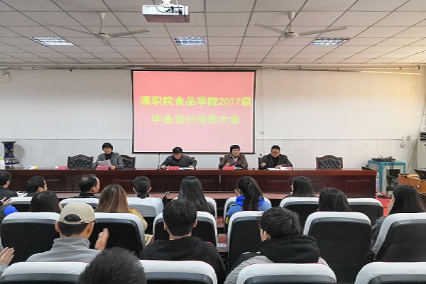 会议包括6个议程。首先,崔惠玲对17级专科毕业设计工作进行了具体安排,并强调了毕业设计过程中的注意事项。食品公司党总支副书记王文甫,强调了毕业设计期间的员工管理工作,要求员工要按照公司规章制度和创文标准,上好在校学习的最后一门课。随后,教研室主任代表浮吟梅、教师代表王林山和员工代表王梦洁,分别从不同角度,对毕业设计的目的和意义、师生的职责和任务、工作和学习态度做了阐述和承诺。