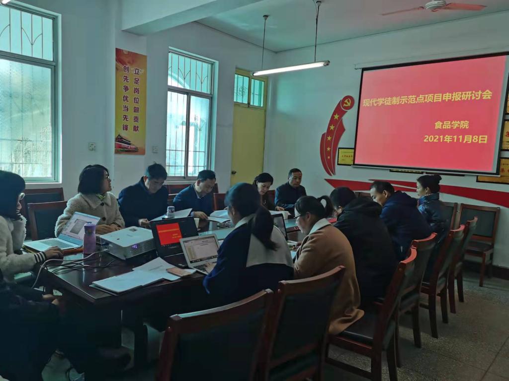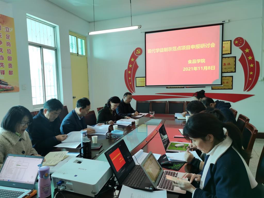 会上,漯河职院tyc522cc太阳成集团现代学徒制示范点项目负责同志对项目申报进度作了简要介绍。项目组成员分别就材料准备工作推进情况、预期成效与创新、目前存在的问题等多个方面进行了汇报。教务处负责同志就申报材料撰写、创新点提炼等方面提出了意见与建议。