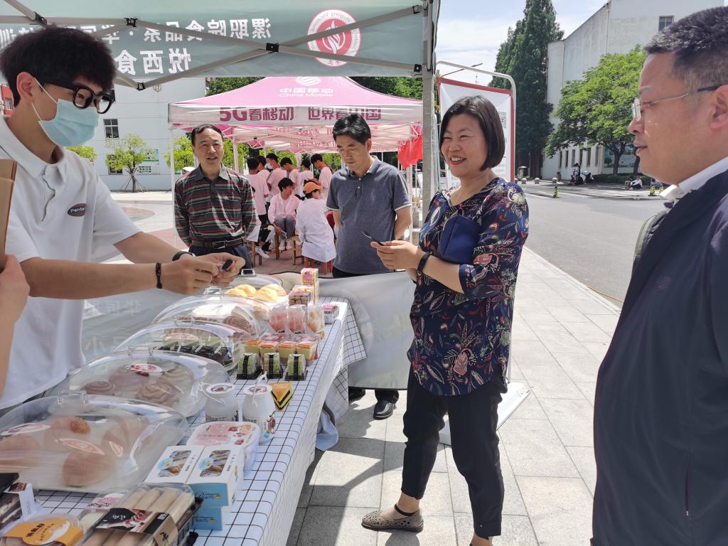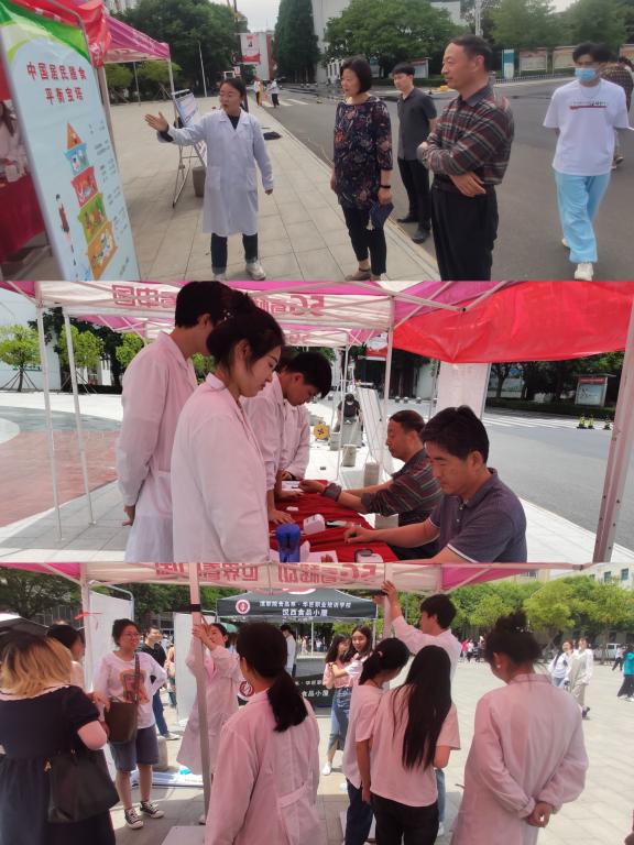 员工为广大师生免费测量血压、身高和体重,介绍营养与健康方面的知识,并为他们提供合理的膳食建议。