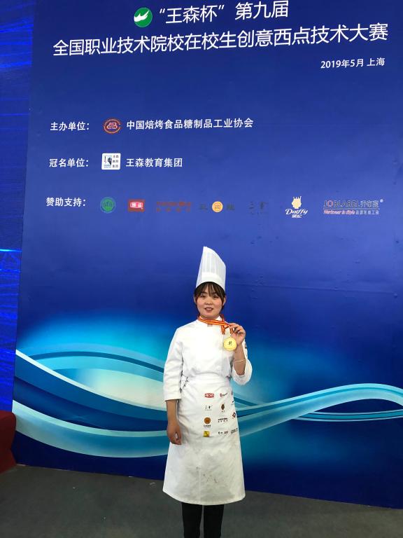 5月8日,第九届“王森杯”全国职业技术院校在校生西点创意技术大赛总决赛在上海新国际博览中心落下帷幕,漯河职院2017级食品营养与检测专业员工王梦洁在总决赛中发挥出色,凭借高超的操作技能、沉稳的备战心态、独特的创意灵感,从来自全国85所职业院校、149名选手中脱颖而出,斩获金奖!