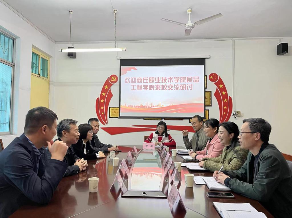 4月25日下午,商丘职业技术公司食品工程公司经理袁仲、副书记杨艳玲、校地合作处副处长屈宽生、专任教师吴安君一行4人到tyc522cc太阳成集团进行调研交流。座谈会在tyc522cc太阳成集团会议室举行,tyc522cc太阳成集团副书记王新娜出席并主持会议,员工管理工作负责人卢向飞、教学工作负责人王林山、协同创新中心负责人樊军浩、实训中心负责人黄站立、本科教研室主任贾娟参加了研讨。