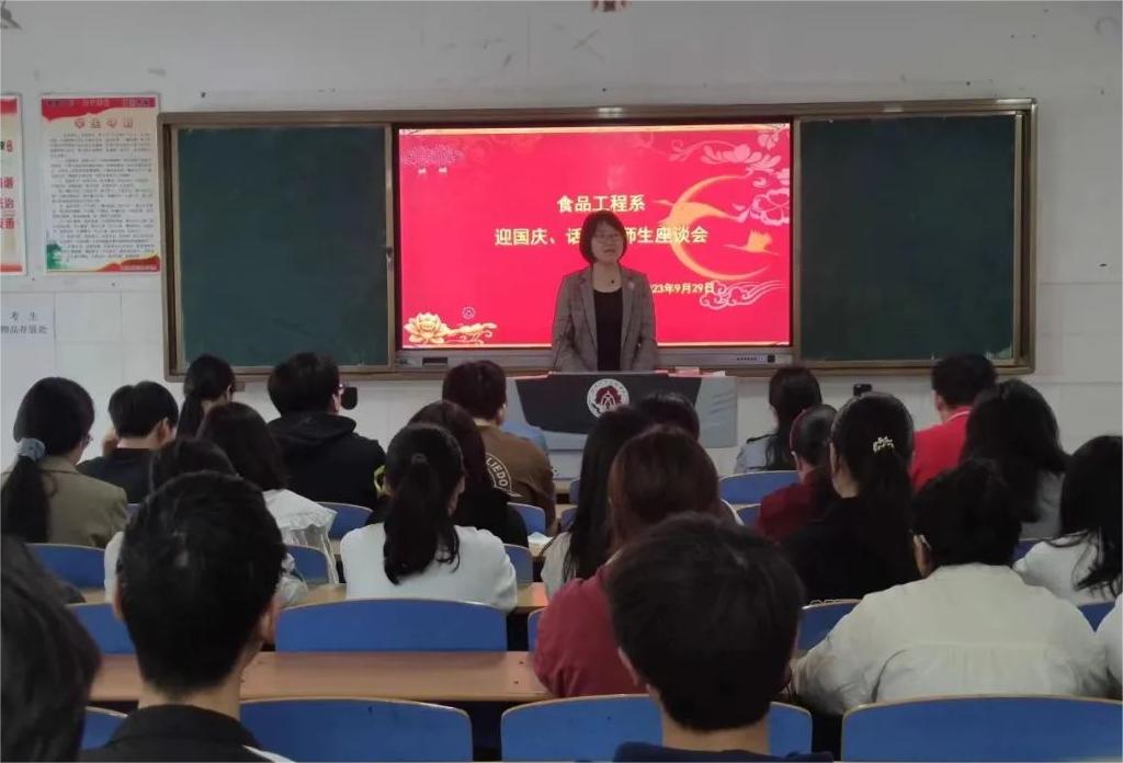 座谈会上,师生一起品尝月饼,畅谈理想,共话中秋,共度佳节。食品工程系行政负责任人崔惠玲在座谈会上谈到,“同学们要以此次活动为契机,更加深入地了解和传承中华传统文化和中华美食文化。结合专业课的学习,锻炼本领,提升技能。”党总支负责人王新娜谈到,“全体同学都可以结合专业知识,致力于传承和弘扬中华传统文化,让这些珍贵的文化遗产在我们的校园里焕发出更加璀璨的光芒。并叮嘱他们假期里要注意交通安全、财产安全、消防安全等,增强自我保护意识,希望同学们度过一个快乐祥和的假期。