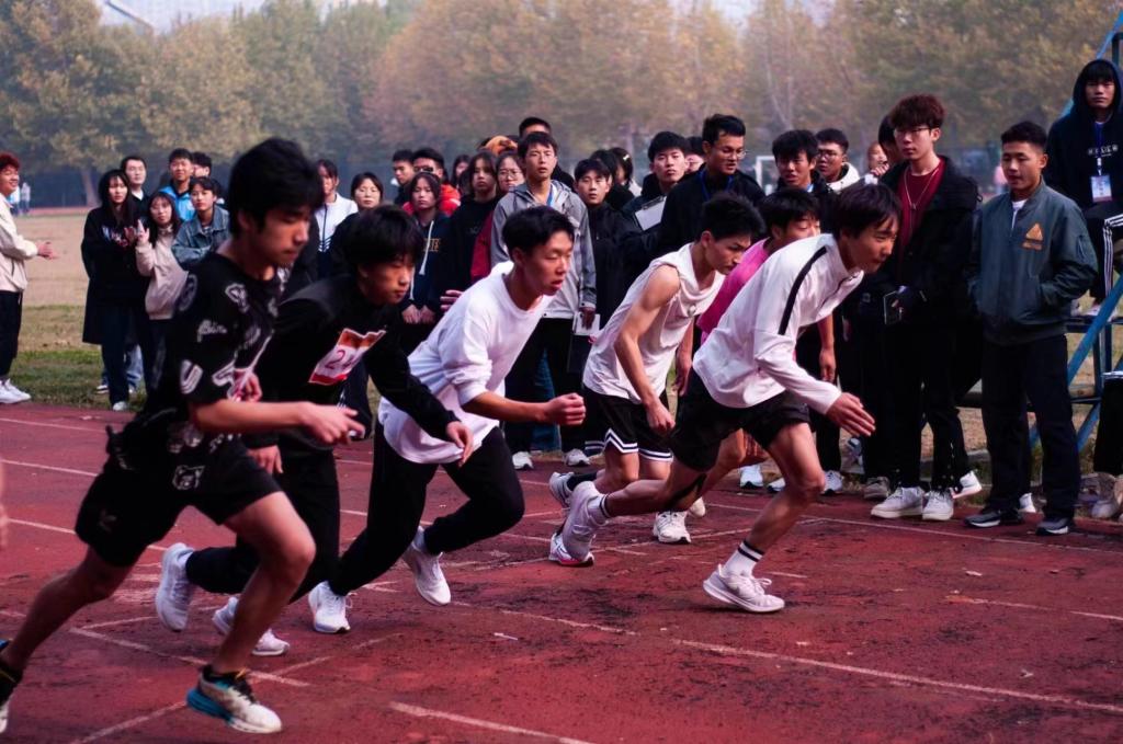 广阔跑道上,心无旁骛;在起跑线前,蓄势待发;运动员们似离弦的箭,迈着矫健的步伐冲刺!